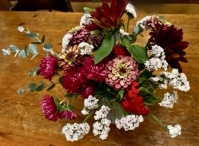ヨメゴのおチエが職場に売りに来ている花農家の人から、この花束を400円で買ってきた。