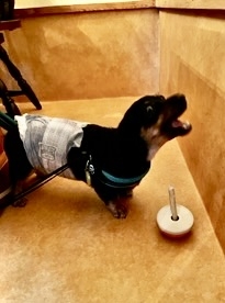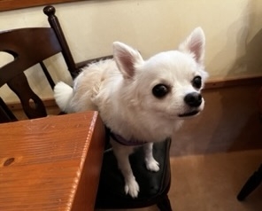 2023.09.12 この頃チワワと何かのmix犬が増えてきました。 この子はチワワがより強く、被毛は真っ白なマルチーズ。 結構ワルちゃん、でもカワイイ。 今は犬のための便利なものがたくさんあります。 これなんぞは感心しました。