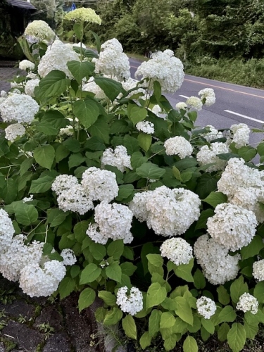 2024.07.20 梅雨が明けたらしい。 ペンション区内はどこもかしこもこの白いアジサイ様な花「アナベル」が咲いている。 でもこれはアジサイの科ではなく北米原産のユキノシタ科の園芸種植物だ。 その繁殖力は強く、当地のように寒いところでもどんどん増えていく。 はじめはどの家でも数本植えただけだったが、この10年くらいの間にあっという間に広まった。 今や原村ペンションを象徴するような花になっている。 涼しげな夏の花だ。