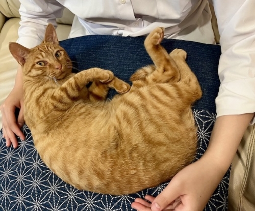 トラジはとっても甘えん坊。いつも誰かの膝に入って寝ています。動物の気配のない部屋は寒々としたものです。でもトラちゃんのおかげで当方はあたたかい雰囲気に満ちています。本当は犬も飼いたいけど私のトシでは無理ね。たった3200歩しか歩けないようでは飼う資格なし。無責任なことはしたくないからね。