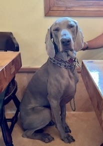 ワイマナラーのグランツ君が今年も来てくれました。この犬種はドイツ原産だそうです。とても美しい被毛です。あんまり綺麗だったので触るのが憚れるほどでした。ドイツ語でグランツ(glanz)とは輝きのこと。まさに輝くようなグランツ君でした。とても表情が豊かで、初めは警戒の色が眼に見えましたが、程なく慣れ、優しい表情を見せてくれました。パパが大好きで片時もそばを離れません。本当は写真がキライなのにちゃんと撮らせてくれました。外ズラがいいということは賢い証拠。状況がちゃんとわかっているということですから。人間でもそれができない人がいるよね。