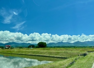 2025.05.31 田んぼに水が張られ、あとは苗を植えるだけ。いつ見てもこの光景はいいものだ。しかし、かつては水田であったところが今は休耕田になっていて、それが水を張られた田んぼより多いのだ。私はそれをとても痛ましい気持ちで眺める。米がない、と言われる昨今、広範囲の休耕田を目の当たりにするとやるせ無い気持ちになってくる。米がないならパンをお食べ、というけれど、米ほど添加物のない食品はあるまい。だから米が作られなくなると困るのだ。そして思う。この老いた身に何ができるだろうかと。